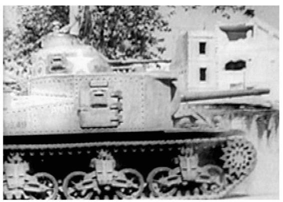 An M3 medium tank belonging to Company A, 751st Tank Battalion (Medium), engages in street fighting in Bizerte, Tunisia, on 8 May 1943. The separate tank battalions saw little action except during the first and last days of the North Africa campaign. SIGNAL CORPS FILM
