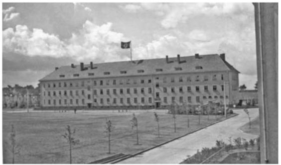 View from the headquarters building of the 2nd Battalion of the regiment of the memorial dedicated on 16 March in the General-Lutz-Kaserne. To the left are the billets of the 6th, 7th and 8th Companies.