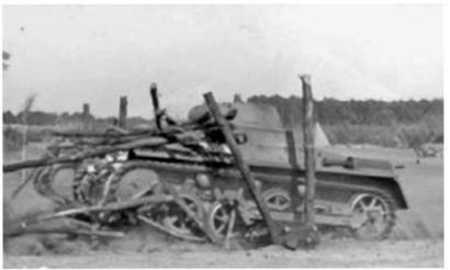 Another view of the Panzer Ia seen above. The earliest model of the Panzer Iwas most easily identified by having only four roadwheels and three return rollers. The idler wheel served as a quasi fifth roadwheel. Later models of the vehicles had five roadwheels, four return rollers and an elevated idler arm.