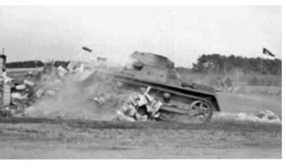 Panzer I's of the 2nd Battalion crash through obstacles.