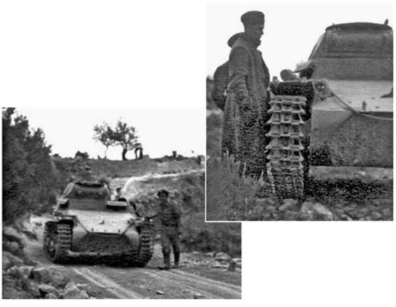 Above: APanzerIIof the 2nd Company, to which field camouflage-cut vegetation-has been applied. Below: A PanzerII in a concealed position.
