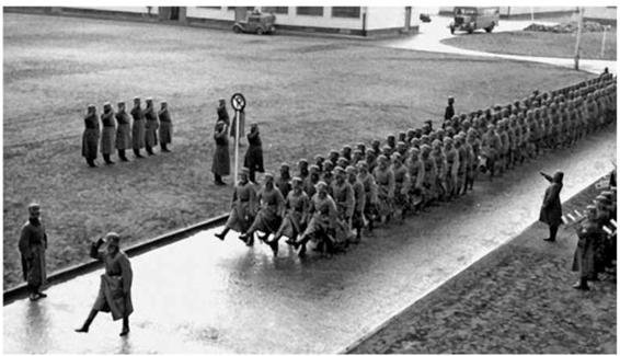 1937: Swearing in recruits for the Wiinsdorf garrisons at the General-Lutz-Kaserne. The ceremony was concluded with a pass-inreview.