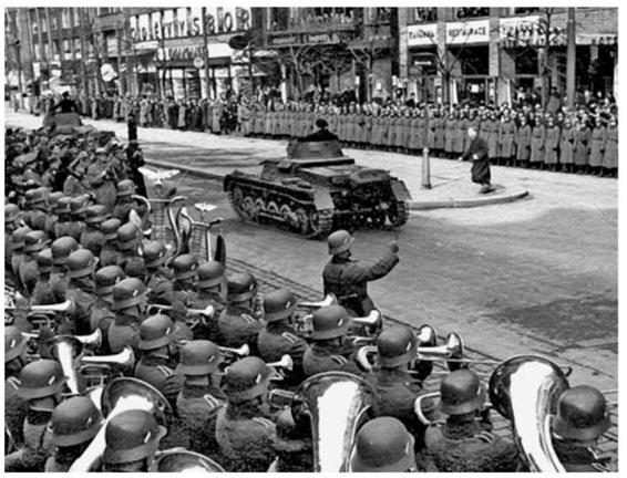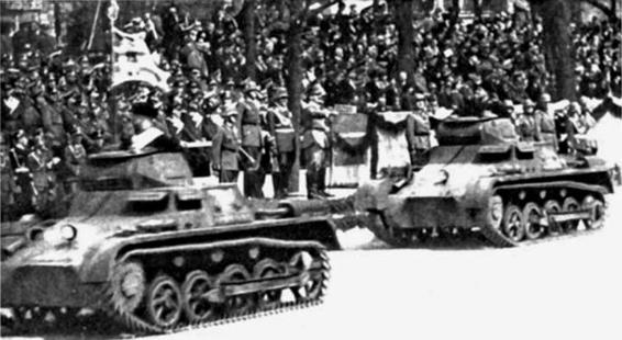 A Panzer I passes a regimental band.