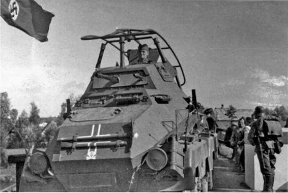 An Sd.Kfz. 231 eight-wheeled armored car crosses the border on 8 October.