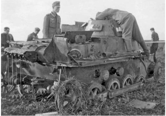 In the fighting that destroyed this Panzer I, Panzerschiitze Bader of the 2nd Battalion was killed.