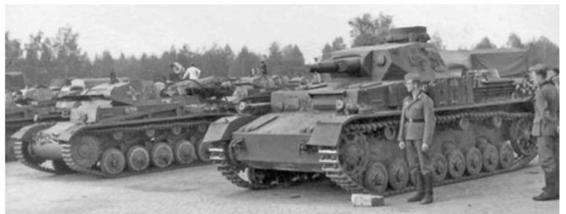 Panzer lit and IV's after the campaign in Poland. For the most part, efforts have been made to eliminate the large white crosses.