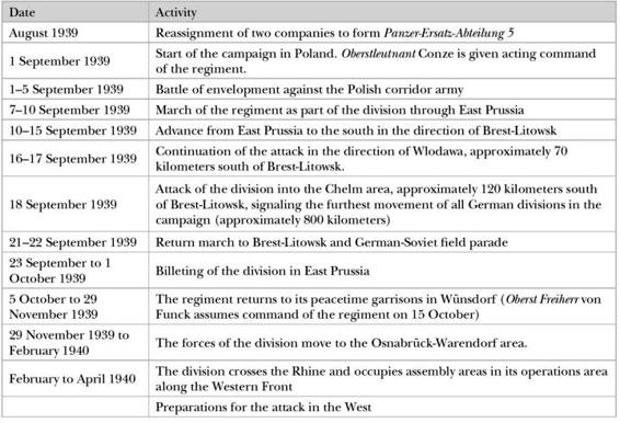 After the mobilization, the 1st Battalion gave up its 3rd Company and the 2nd Battalion its 7th Company to help form a tank training and replacement detachment, PanzerErsatz-Abteilung5.'