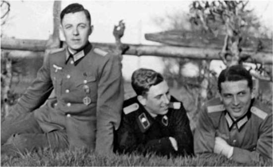 Between the campaigns: Lieutenants in the regiment. From the left: Leutnant Steinbrecher, Leutnant Fricke (killed in action in Africa in 1942) and LeutnantZorn.