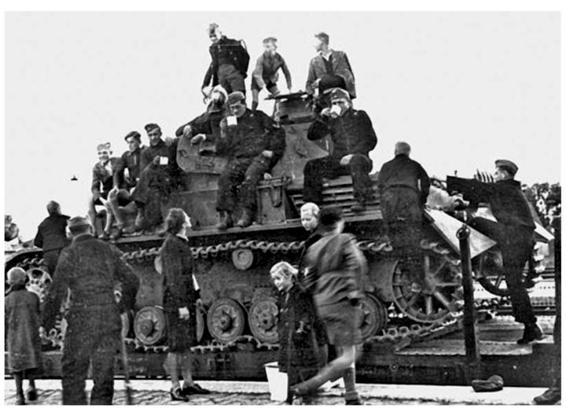 Spring 1940: The regiment moves by rail to the western frontier, with the local populace offering support.