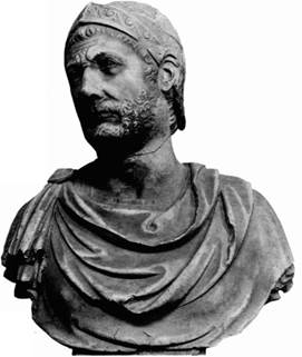 This portrait bust from Capua has sometimes been identified as Hannibal Barca near the end of his life, although in fact we have no certain likenesses of the great commander. Hannibal was only in his mid twenties when he invaded Italy, but possessed long experience of campaigning in Spain under his father, Hamilcar, and brother-in-law, Hasdrubal. The epitome of the ideal Hellenistic general, Hannibal was able to control and inspire the many different nationalities of soldiers serving in bis army. Time after time he was able to surprise bis Roman opponents, always doing the unexpected. He remained undefeated in a major action until Zama in 202 вс.