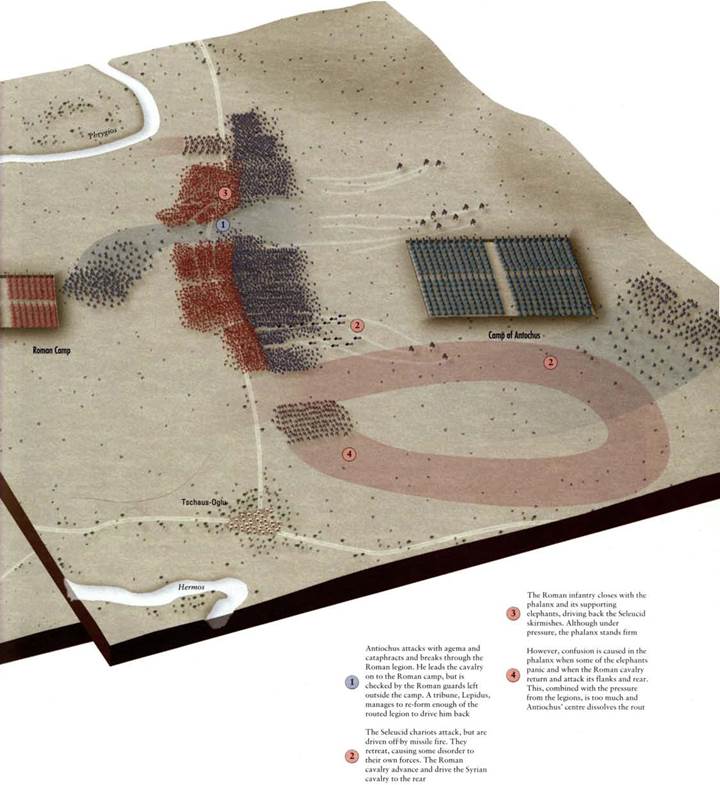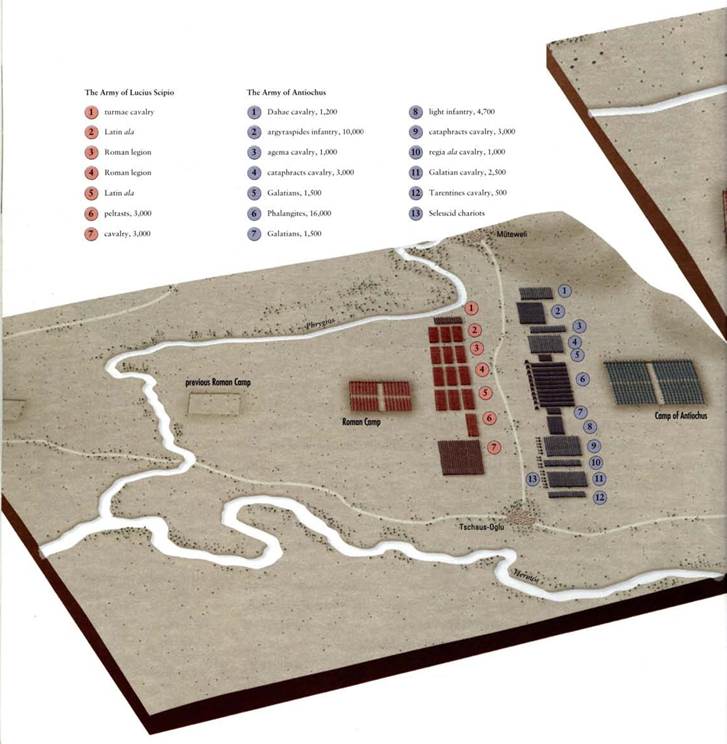 The battle of Magnesia teas fought after nearly two weeks of cautious manoeuvring as the rival armies attempted to gain an advantage. The Romans gradually camped further and further forward and deployed their battle line so close to the Seleucids that Antiochus the Great was forced to fight. The Roman armies which fought against the Hellenistic kingdoms in the early second century were exceptionally experienced, well trained and led by men who had learned their trade in the hard school of the war with Hannibal.